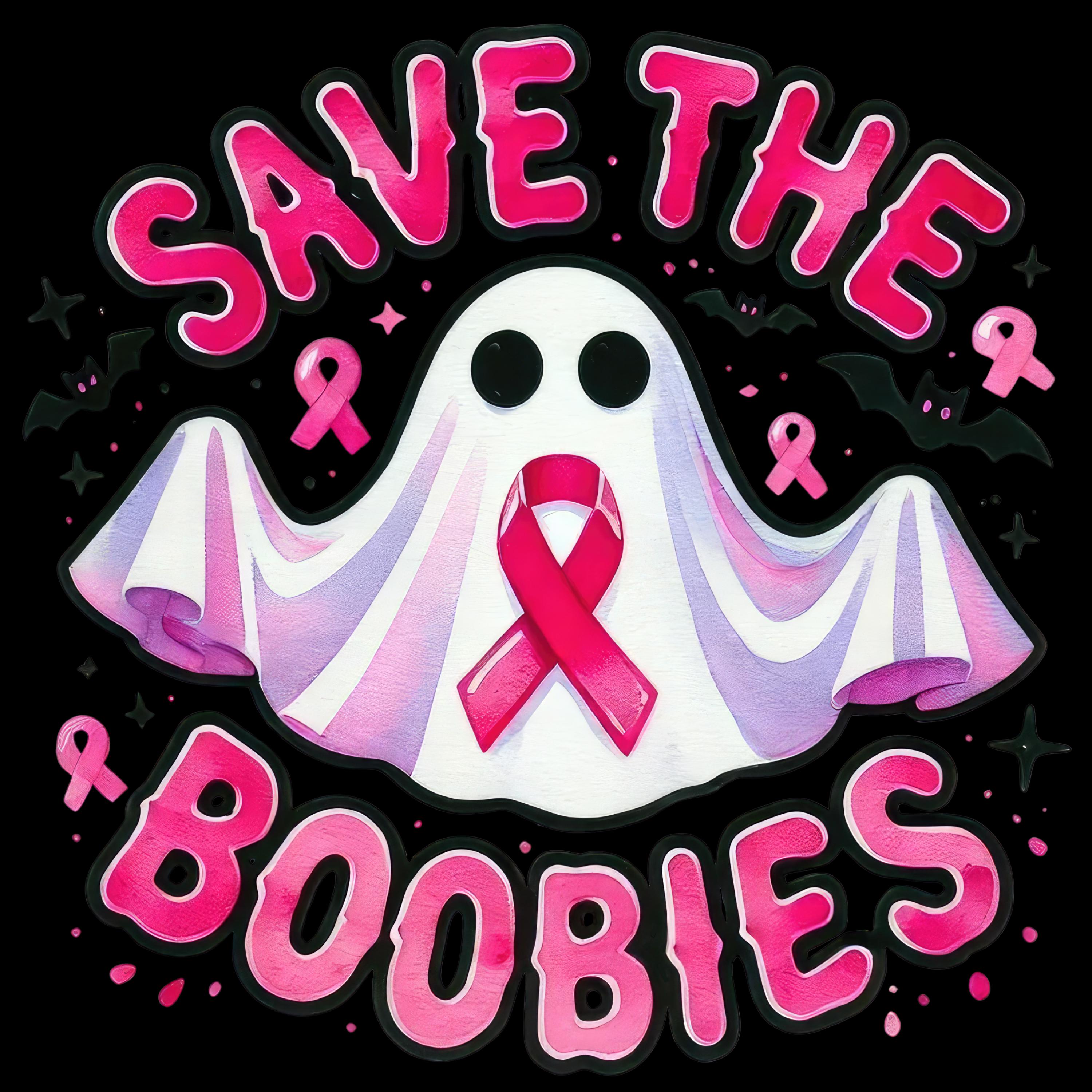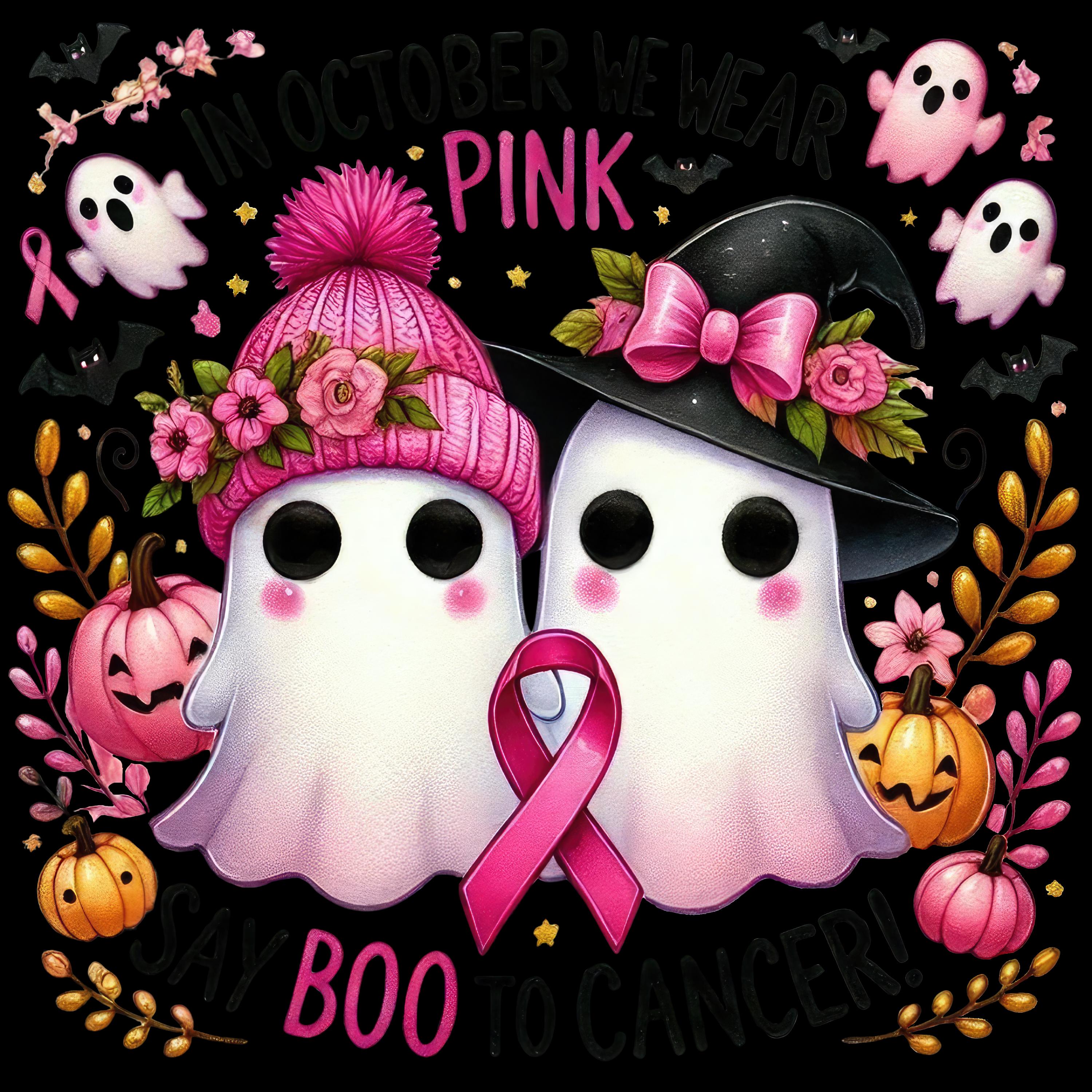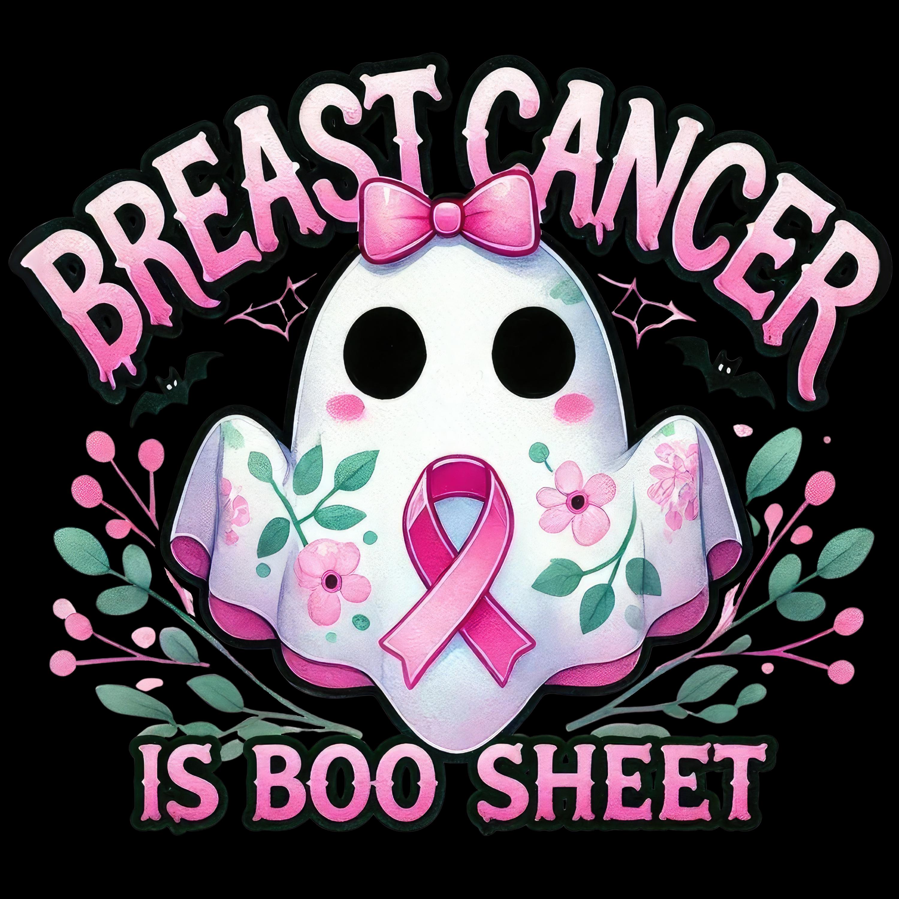 Design: “Breast Cancer Is Boo Sheet” with ghost and pink ribbon