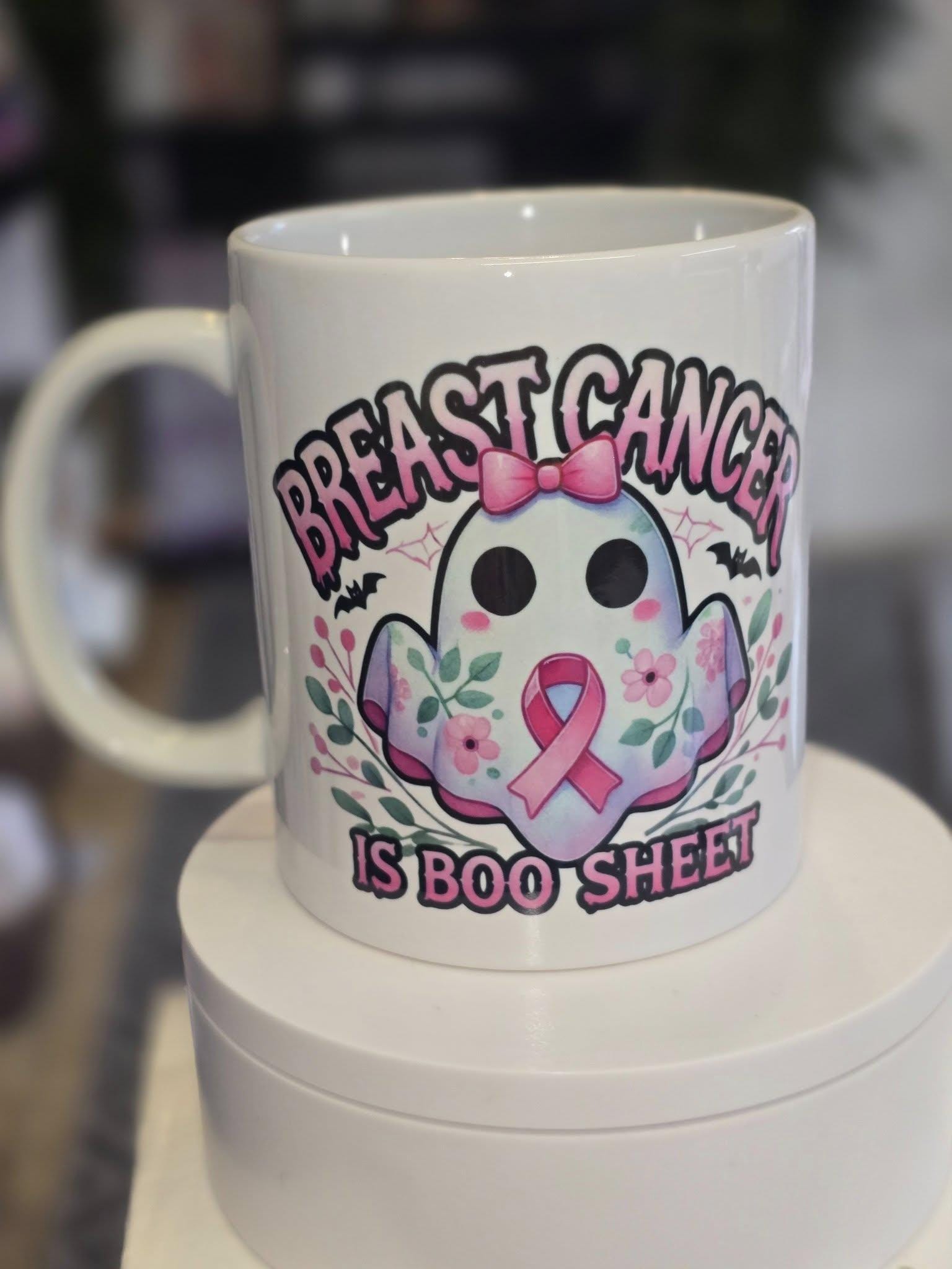 Show your support — with a little humor and a lot of heart. This “Breast Cancer Is Boo Sheet” mug is the perfect mix of spooky fun and strong awareness. Featuring a cute ghost and pink ribbon design, it’s a daily reminder of courage, strength, and hope.